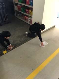 2年生の子供たちが掃除の時間じゃないのに雑巾がけをしています。