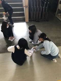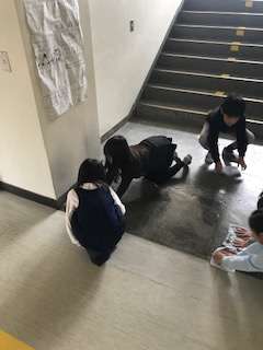 「どうしたの?」と聞くと「階段に濡れてるところがあったから拭いてるんです。」と返事。すごいなぁ。誰に言われたわけでもなく、自分たちで、気付き、行動にうつせる素晴らしい山崎の子供たちです。美しい心を見せてもらいました。