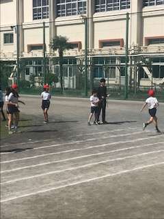 ふと、外を見たら5年生が100メートル走のタイムを測っています。