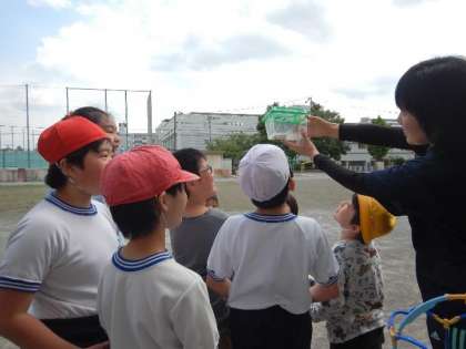 昨年度植えた小松菜が立派に育ちました。そこにやってきたモンシロチョウの卵を育てました。そして、昨日ようやく蝶になり、みんなでお別れすることができました。とてもよい体験学習をすることができました。