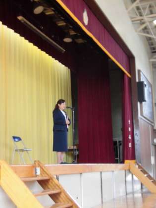 今日は、前副校長先生の離任式を行いました。お忙しい中、山崎小学校の皆さんにお別れを伝えに来てくれました。