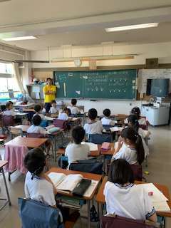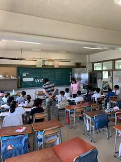運動会直前ですが、お勉強も頑張っています。これは3年生の算数の授業風景です。2クラスを3つに分けて勉強しています。