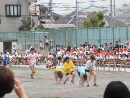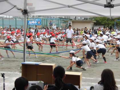 3,4年生による「綱王〜綱を引っ張る覚悟はあるか〜」では、力の限り綱を引きました。