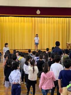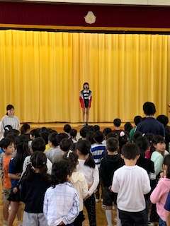 3年生代表が今週末の6年生による山崎太鼓デビューが楽しみです。6年生に応援の気持ちを込めて、おはようございますの挨拶をしましょうと素晴らしい挨拶をしてくれました。