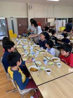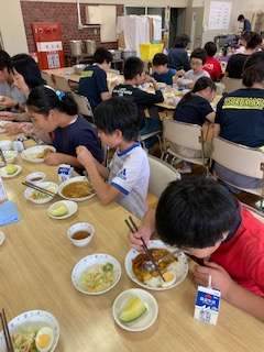 夕飯はカレーライス。みんな元気に美味しくいただいてます。