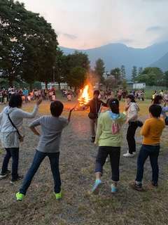 歌い、踊り、盛り上がったキャンプファイヤーもそろそろ終わります。