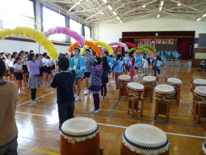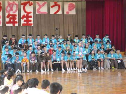 3月3日(木)の8時30分より体育館において「6年生を送る会」が開かれました。山崎小学校をリードし活躍した6年生に感謝の気持ちを伝え、卒業を祝うとともに、お互いの成長を確かめ合いました。各学年の出し物、6年生の山崎太鼓、6年生から5年生への山崎太鼓の引き継ぎ、5年生の祝いの山崎太鼓、全員合唱が行われ、思い出に残るひとときとなりました。