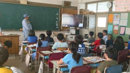 4時間目は、1組が教室にて講義を聞いたり、ビデオを見たりしています。