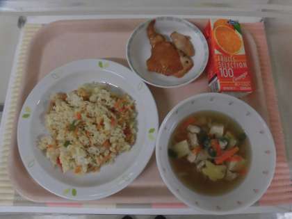 今日は七夕にちなんだ献立です。星の形をしたにんじんやオクラ、かまぼこが入っています。