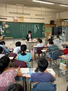 6ー2の1時間目の国語の授業の様子です。ブックトークをしていました。自分が読んだ本の面白さを一人一人、前に立ち、みんなに紹介しています。どの子の紹介も面白くて全部読んでみたくなりました。