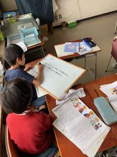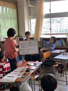 「たのむよ班長」というお話を読んで、その話の問題点とその解決策をグループで話し合って、発表していました。対話的な学びがしっかり出来ていて、さすが5年生という授業風景でした。