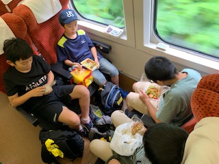 新幹線は米沢を過ぎました。車中で美味しくお弁当をいただきました。