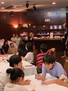 まずは、みんなで歌を歌い、続いて、ジェスチャーゲームで盛り上がっています。