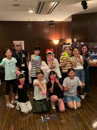 室内レクリエーションを盛り上げてくれたレクリエーション係さんと担任の先生の記念撮影。楽しかったよ。ありがとうレクリエーション係さん。