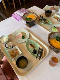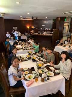 ハイキングに備えてしっかり食べています。昨夜も雨が降っていたので、湯の湖の周りを歩くのは中止して、湯元から湯滝まではバス移動にします。