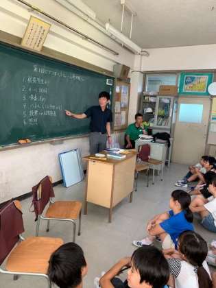 担任の先生お二人と校長、そして副校長先生も集まりましたよ。