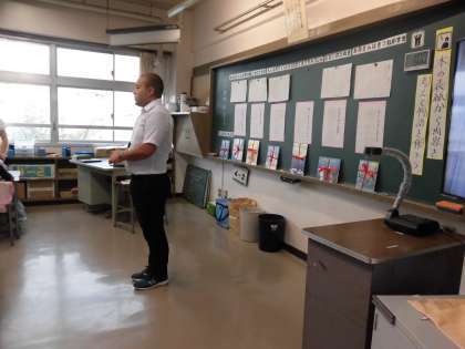 18日(水)は、5時間目に研究授業を行いました。「アニマシオン」の手法を使っての授業でした。絵本の表紙や題名から想像を広げ、話し合い、物語をつくりました。7冊の本に共通するメッセージとして、「月」「夜」「動物」「友だち」と本の内容から考えて発表することができました。想像豊かに育っている子ども達、すばらしいですね。