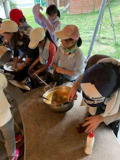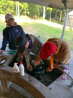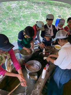 飯盒と鍋についたススを取るのが一苦労。でも、みんな一生懸命頑張ってお片づけをしています。5年生素晴らしいぞ。