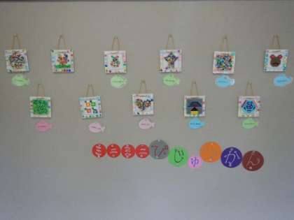 素敵なアイロンビーズがさらに素敵になりました。仲よし学級の廊下に掲示してあります。ぜひ、見に来てください。