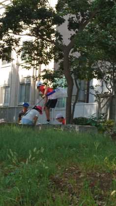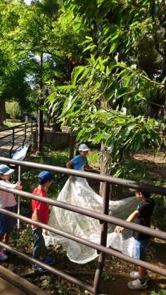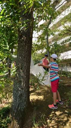 前回と同じ木をゆらして、生き物を探しています。