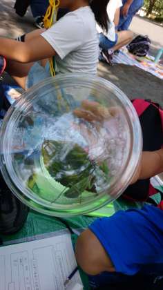 わぁー。捕まえた。カマキリやキマダラカメムシを見つけました。