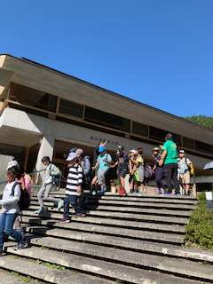 閉室式を終えて、村めぐりにスタート。ふじやまビレジありがとう。楽しかったね。補助員さんはみんなを見送り、荷物の積み込み、部屋の最終片付けをしてくれるのでここで見送りです。