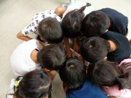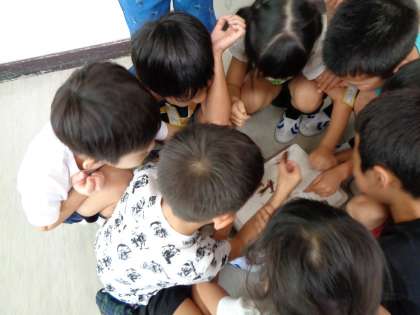 休み時間の度にザリガニを触ろうと奮闘しています。