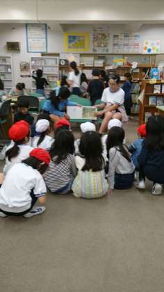今日は、「アナグマのもちよりパーティー」の読み聞かせをしました。長い話でしたが、真剣に聞いている姿がとても素敵でした。クイズにも、楽しそうに参加していました。