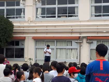 今朝は、朝礼台に立ったのが校長先生ではなく、副校長先生でした。みんなの顔に「ハテナのマーク」が見えました。