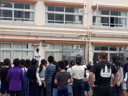 そこで、今朝は、校長先生の不在のお知らせをしました。そして、先週の仲よし学級の連合運動会と今週の6年生の連合運動会について紹介し、今週1週間、何かひとつ「がんばる目標」を自分で決めて、「一緒にがんばろう!」ということを話しました。