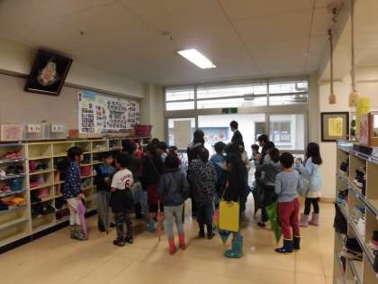 社会科見学では、玄関に一度集まり、「サミット 梅ヶ丘駅前店」に見学に行きました。