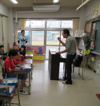 今日は、帝京平成大学の池田先生が講師として来てくれました。最初は、池田先生オリジナルの誰でも飛ばせる紙飛行機をいただき、みんなで飛ばしました。
