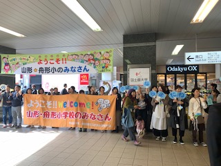 盛大なお見送りありがとうございました。帰りも小田急電鉄の方がお見送りに来てくださいました。商店街の皆さんにもあたたかいお声かけいただき舟形の子どもたち嬉しかったと思います。地域ぐるみで舟形小をお迎えいただいたこと舟形の皆さんも感激していました。