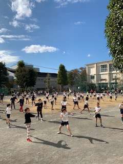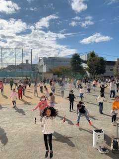 今日の休み時間は、短縄週間でみんなで縄跳び。