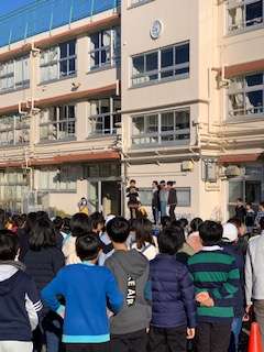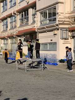 今朝の集会は、集会委員がリードしての児童集会。毎度のことですが、山崎の集会委員のアイデアは面白いです。
