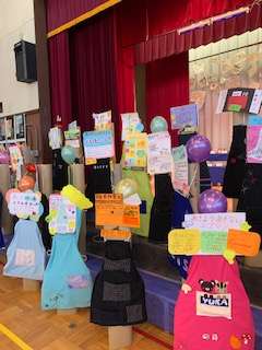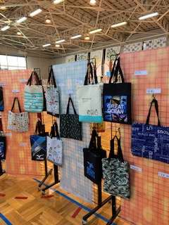 低学年の子どもたちに感想を聞くと、なかなか人気があるのが、エプロンとトートバッグ。どれも一生懸命に作った世界にたった一つの力作です。