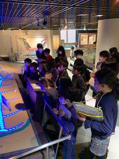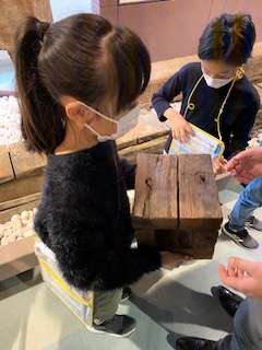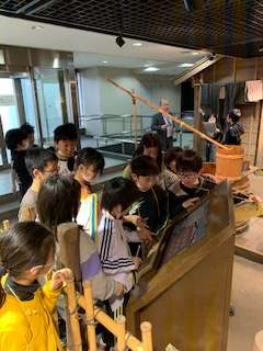 むかーしの木製水道管を実際に持ってみたり、様々な資料を丁寧に説明してもらっています。すでに、学習していることをしっかり生かしているのか素晴らしいです。