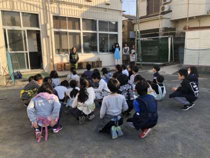 今日の1.2校時は、2組が楮の枝を切ります。ノコギリの使い方を確認して、しっかりと話を聞いています。