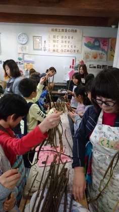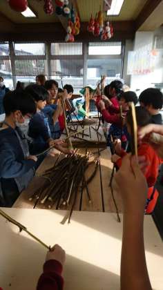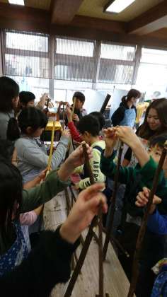 蒸し上がった楮を一本ずつ皮を剥ぎます。熱いけれど、どんどん剥いて楽しくなって来ました。