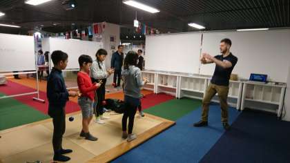 コミュニケーショングループは、会話のゲーム等をしていました。異文化グループは、トーテムポール作り、日本文化グループは、けん玉をやっていました。