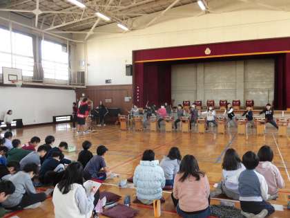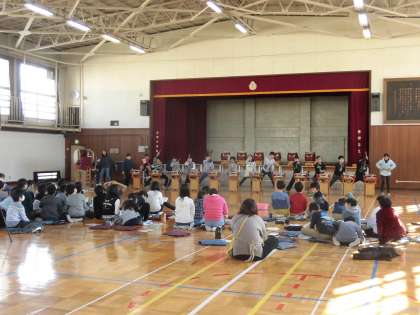 3月の山崎バトンタッチでは、6年生から5年生へ山崎太鼓が引き継がれます。