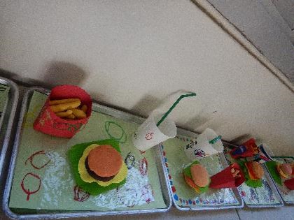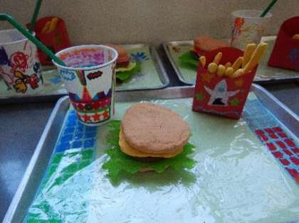 図工でハンバーガー作り4(仲よし学級)
