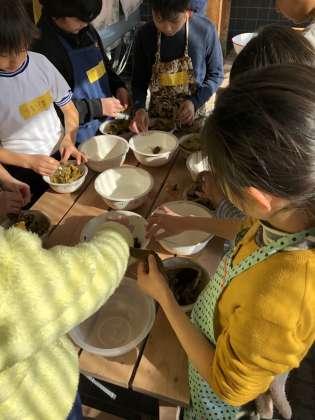 前回、切った楮を乾かし、水につけ、煮てからいよいよ、ちりとりです。