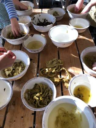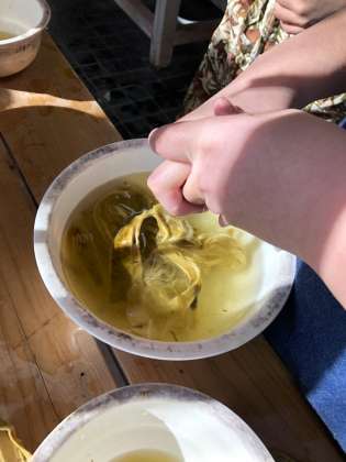 ちりとりとは、ついている皮をとります。それをおかにだし、水できれいにします。みんな、楽しそうに頑張っていました。