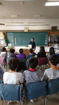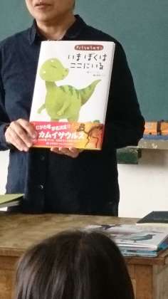 1組は、3校時に絵本専門士の方と編集社の方がいらして、絵本の読み聞かせ[きょうりゅうのサンいまぼくはここにいる]をしていただきました。