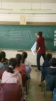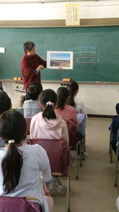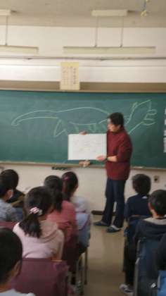 日本は、地震などで地層が曲がっているので化石が見つけにくい。でも、見つけられた恐竜は、すごいんだと言うことに子どもたちは驚いていました。