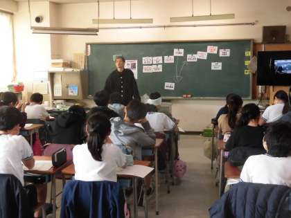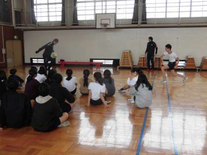 続いては、教室で自身の経験をもとに、夢に向かう姿、夢を追いかける姿を話してくれました。実際に歩んできた完山選手の言葉は、子どもたちの心に響いていました。これからの生活の大きな力となっていくことでしょう。