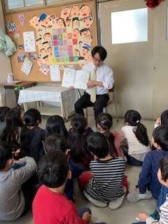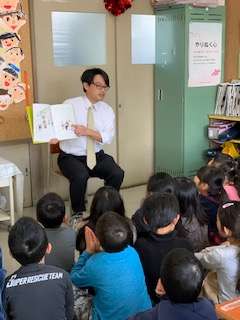 今日は木曜日。1.2年生は朝の読み聞かせの日です。毎週、目を輝かせて読み聞かせを聞いている子どもたち。さて、今日はどんなお話かな?と待っていたら現れたのは副校長先生。今日の1ー2の読み聞かせは副校長先生でした。お話は「へびのクリクター」みんな真剣に聞いてくれて副校長先生も嬉しそう。