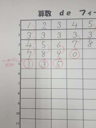 写真の左の計算は「1+3」ですね。その答えを下にかきます。「4」