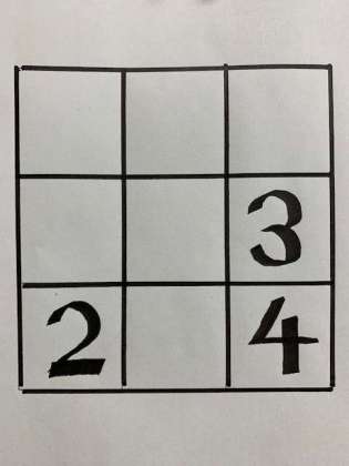 縦横斜めどの列を足し算しても同じ答えになるのが魔方陣。さて、では、どこを最初に埋めましょうか?